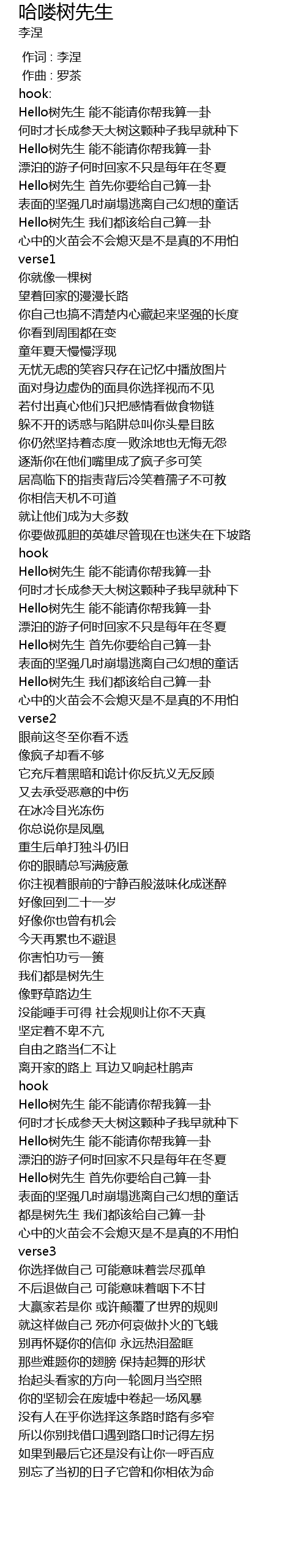 | [01:50.762] | Hello树先生 我们都该给自己算一卦 |
