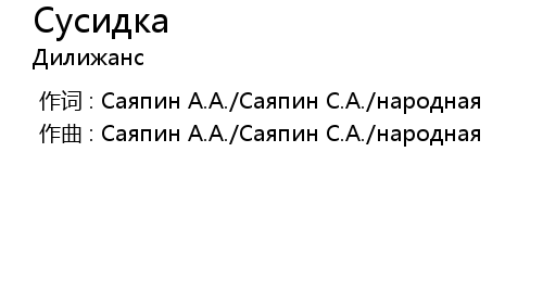 | [00:00.00-1] | 作曲 : Саяпин А.А./Саяпин С.А./народная |