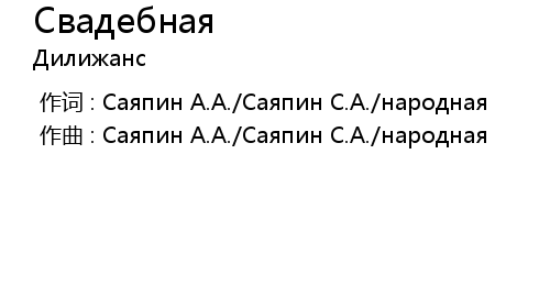 | [00:00.00-1] | 作曲 : Саяпин А.А./Саяпин С.А./народная |