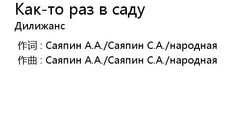 | [00:00.00-1] | 作曲 : Саяпин А.А./Саяпин С.А./народная |