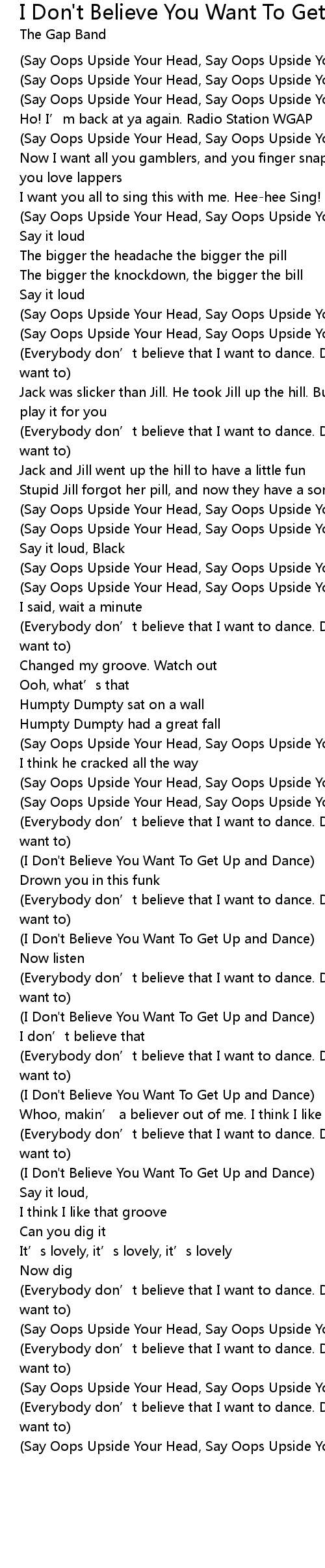 | Song | I Don't Believe You Want To Get Up And Dance (Oops) |