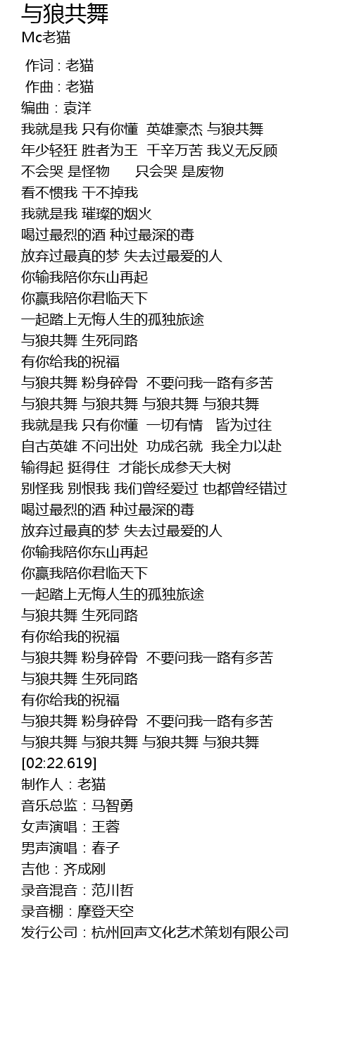 | [02:04.888] | 与狼共舞 与狼共舞 与狼共舞 与狼共舞 |