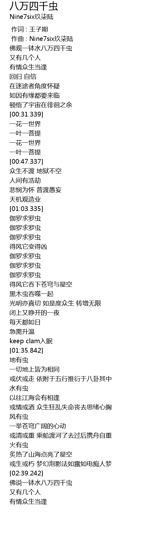 | [02:39.987] | fó shuō yī bō shuǐ bā wàn sì qiān chóng |