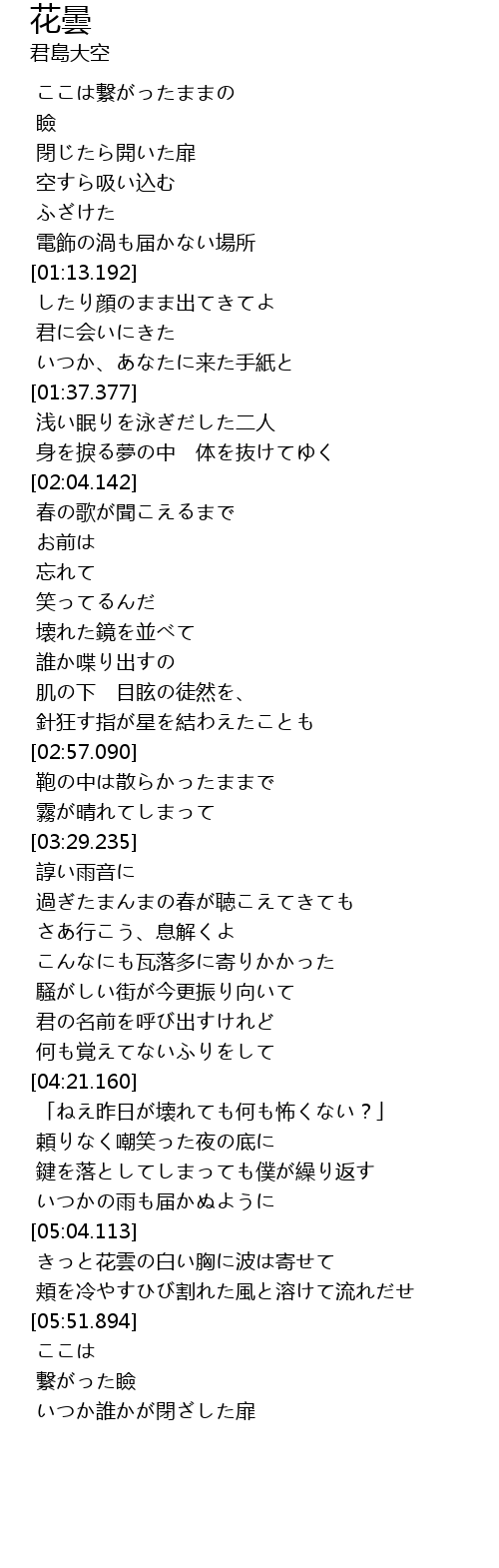 | [05:04.314] | きっと花雲の白い胸に波は寄せて |