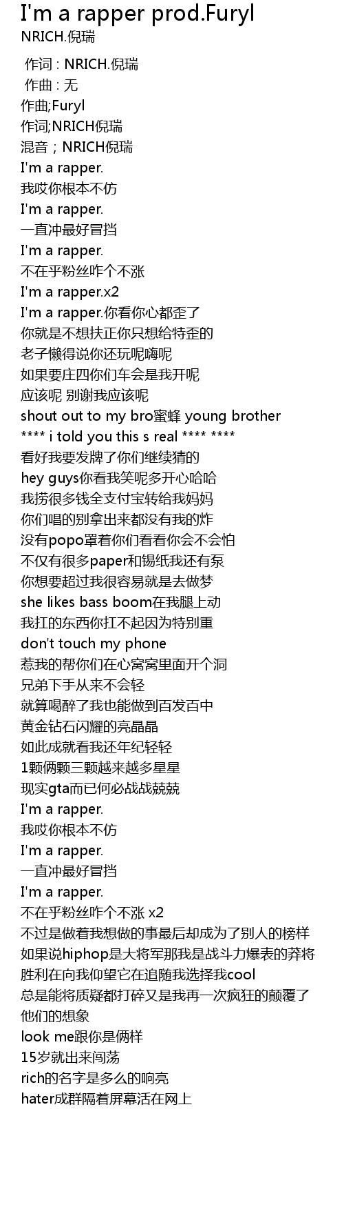 | [00:43.196] | I' m a rapper. ni kan ni xin dou wai le |