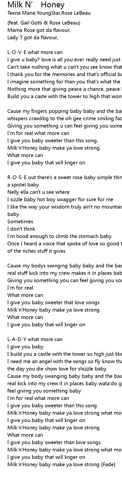 Milk'n'Honey baby make ya love strong. [Verse 2:] |