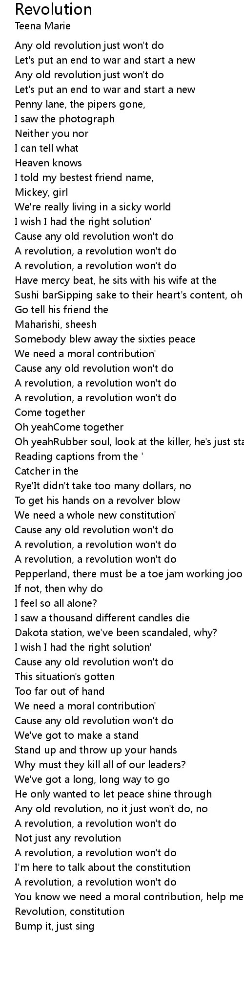 Cause any old revolution won't do |
