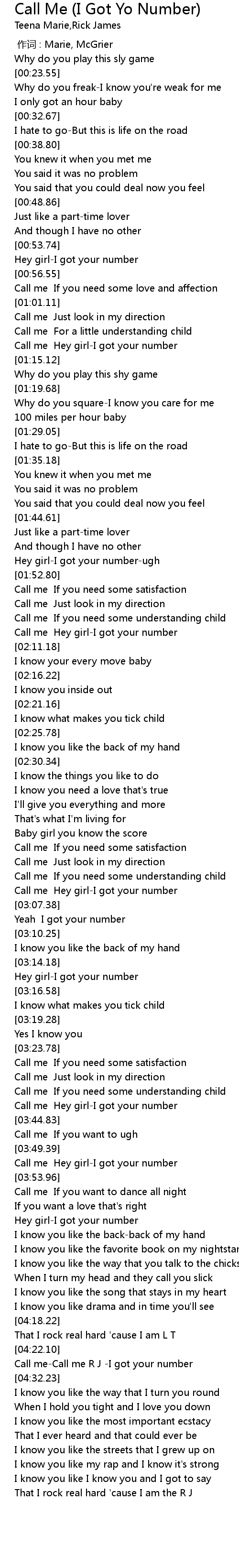 | [01:49.93] | Hey girl-I got your number-ugh |