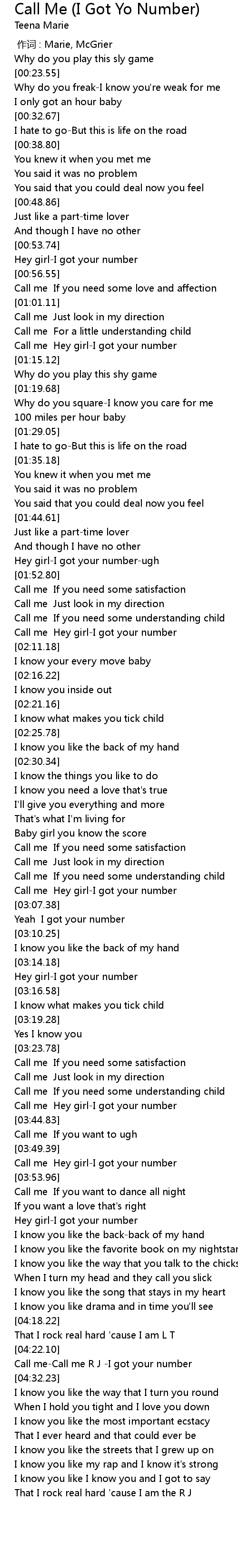 | [01:49.93] | Hey girl-I got your number-ugh |