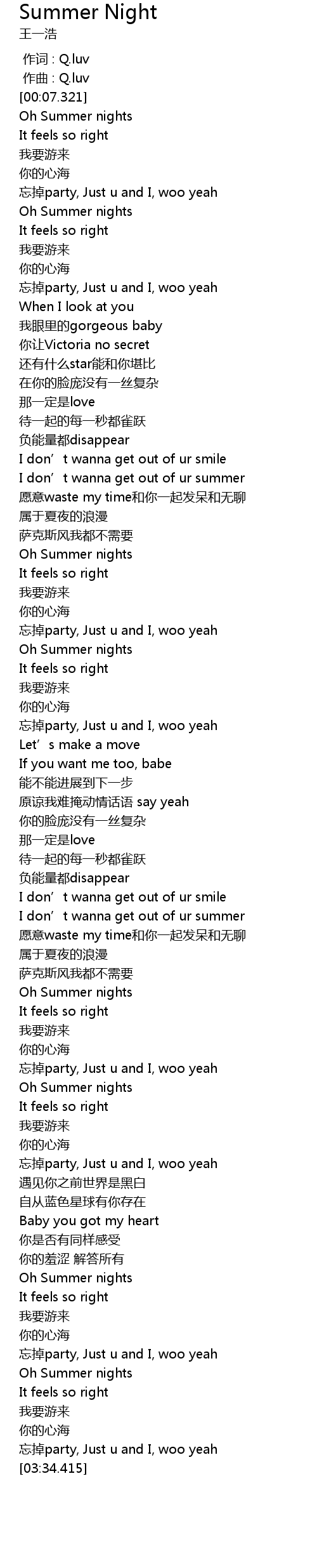 | [02:10.921] | I don' t wanna get out of ur summer |