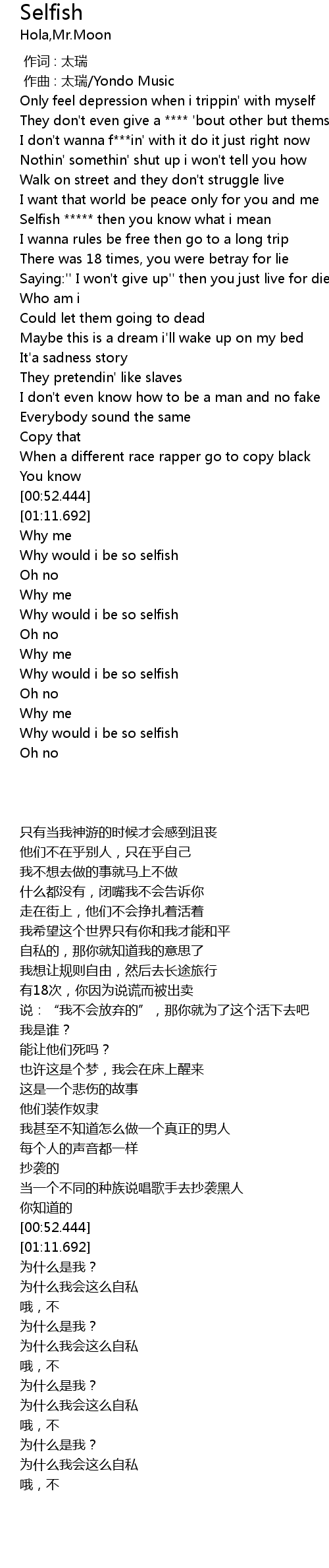 | [00:19.437] | They don't even give a **** 'bout other but themselves |