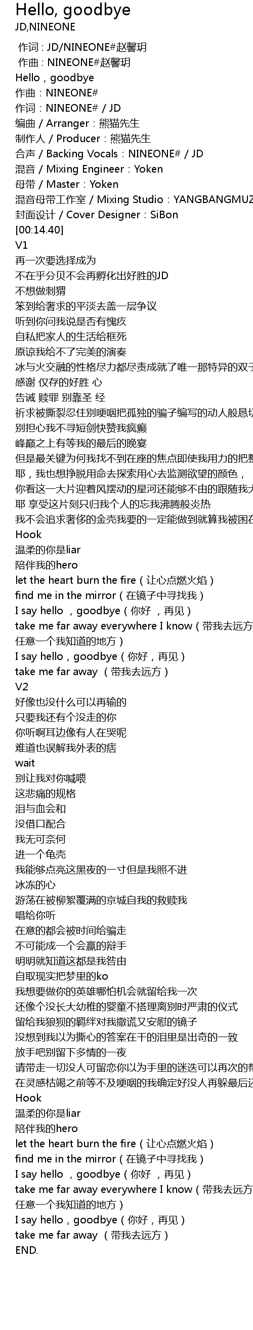 | [00:10.17] | 合声 / Backing Vocals:NINEONE# / JD |