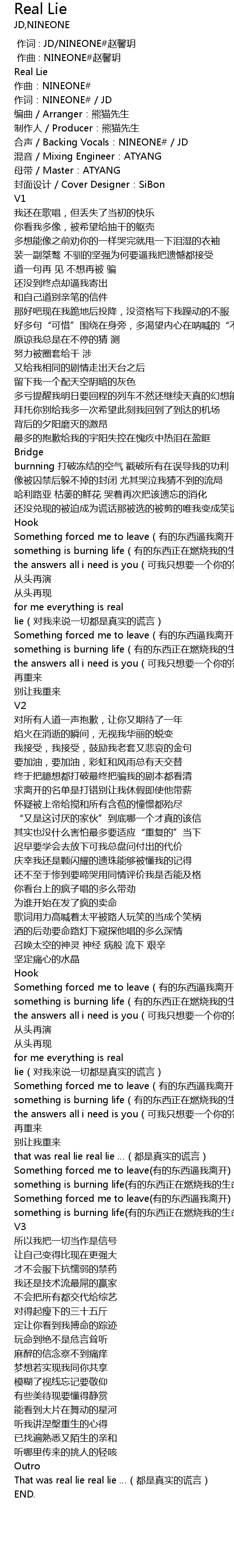 | [04:15.02] | That was real lie real lie …(都是真实的谎言) |