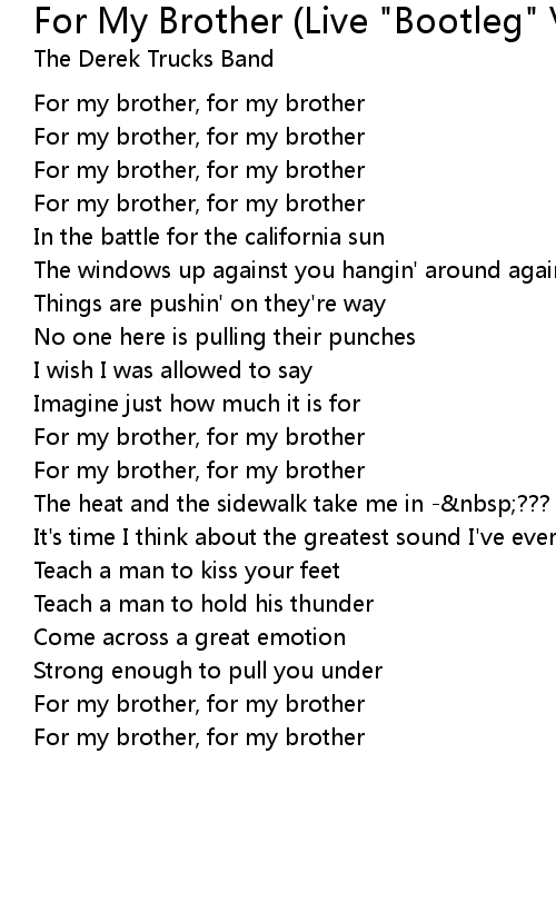 For My Brother (Live "Bootleg" Version) - Live "Bootleg" Version Lyrics