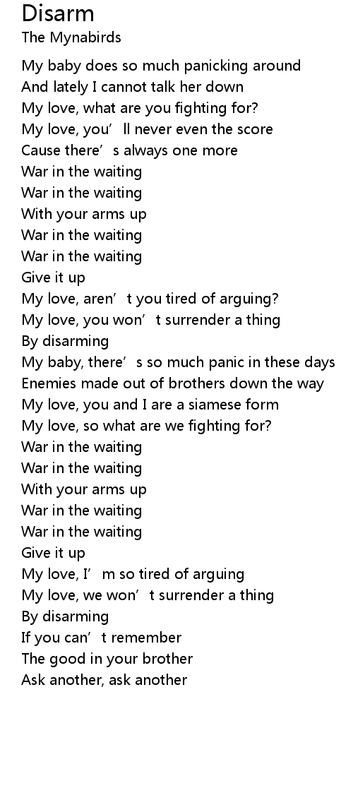 | My love, I’m so tired of arguing | |