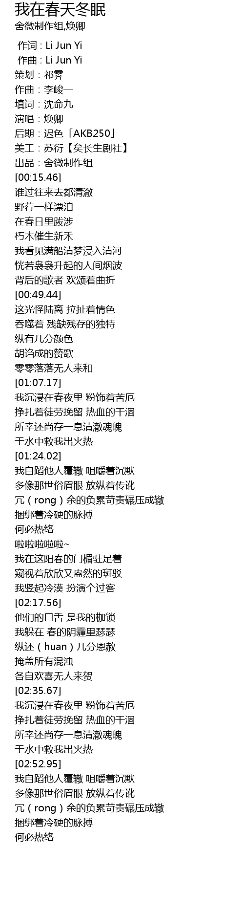 | [02:36.40] | 我沉浸在春夜里 粉饰着苦厄 |
