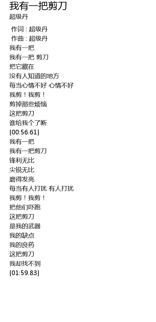 | [01:02.74] | wǒ yǒu yī bǎ jiǎn dāo |