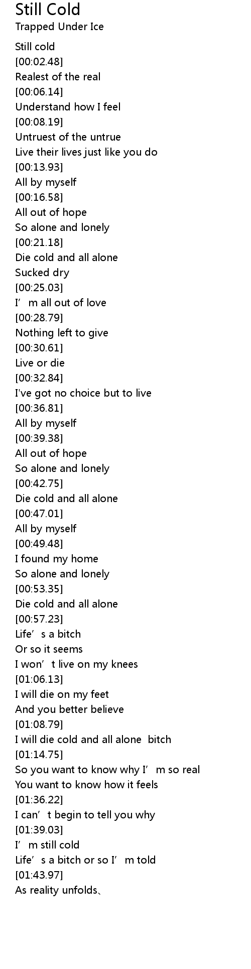| [00:44.23] | Die cold and all alone |