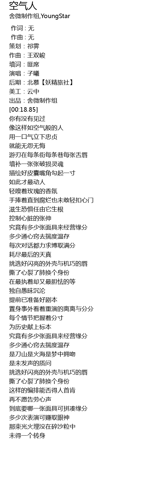 | [00:14.82] | 后期:北慕【妖精旅社】 |