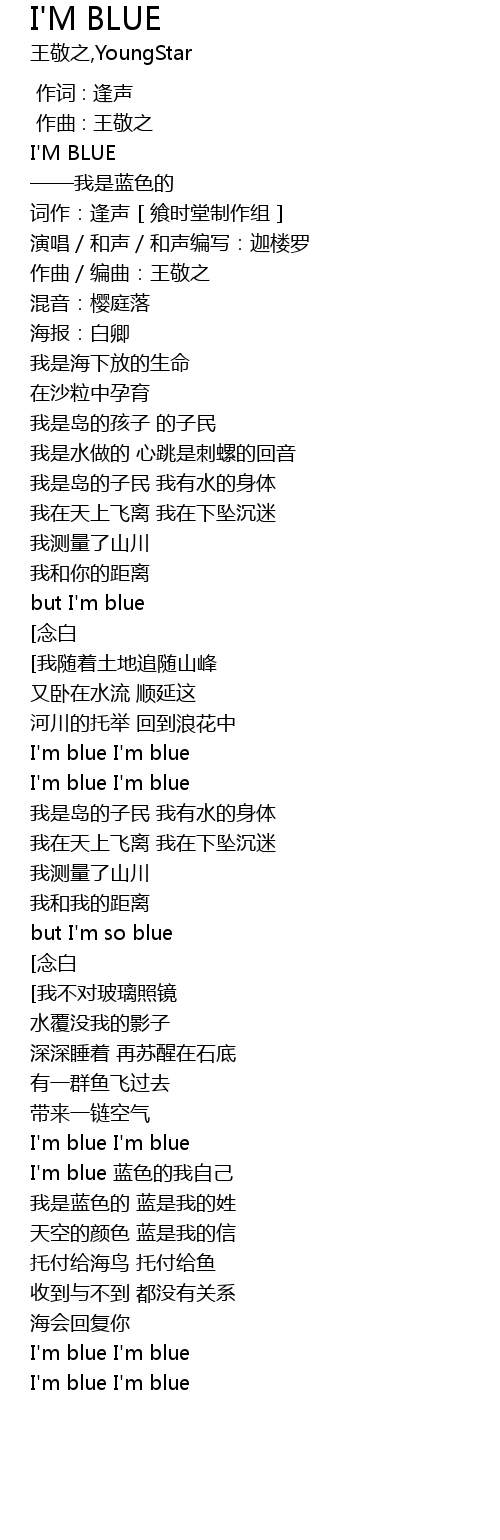 | [04:07.824] | I'm blue 蓝色的我自己 |