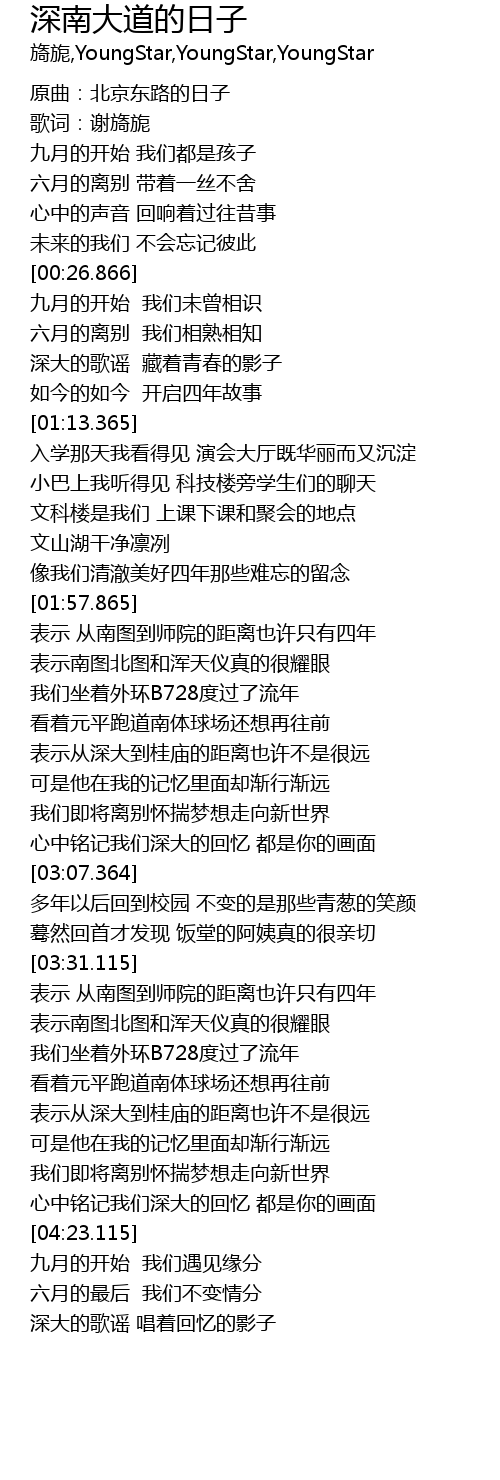 | [00:42.115] | 深大的歌谣 藏着青春的影子 |