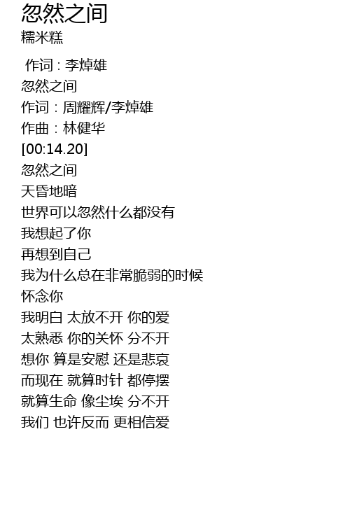 | [00:06.20] | 作词:周耀辉/李焯雄 |