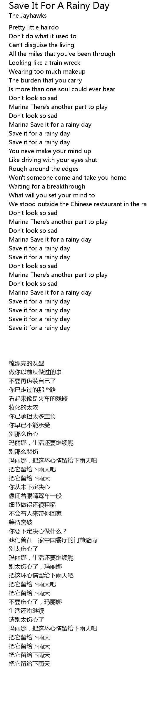 Marina Save it for a rainy day |