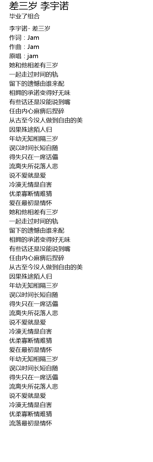 | 李宇诺- 差三岁 | |