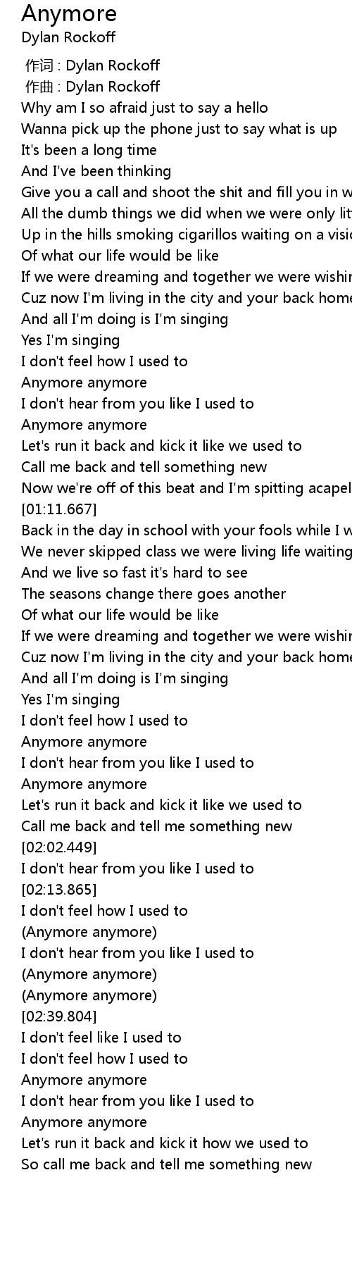 | [02:32.751] | Anymore anymore |