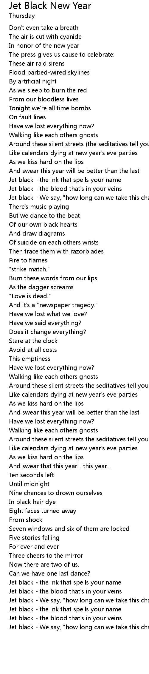 Jet black - We say, "how long can we take this chance not to celebrate?" |