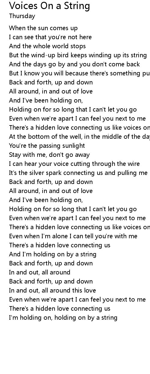 I'm holding on, holding on by a string |