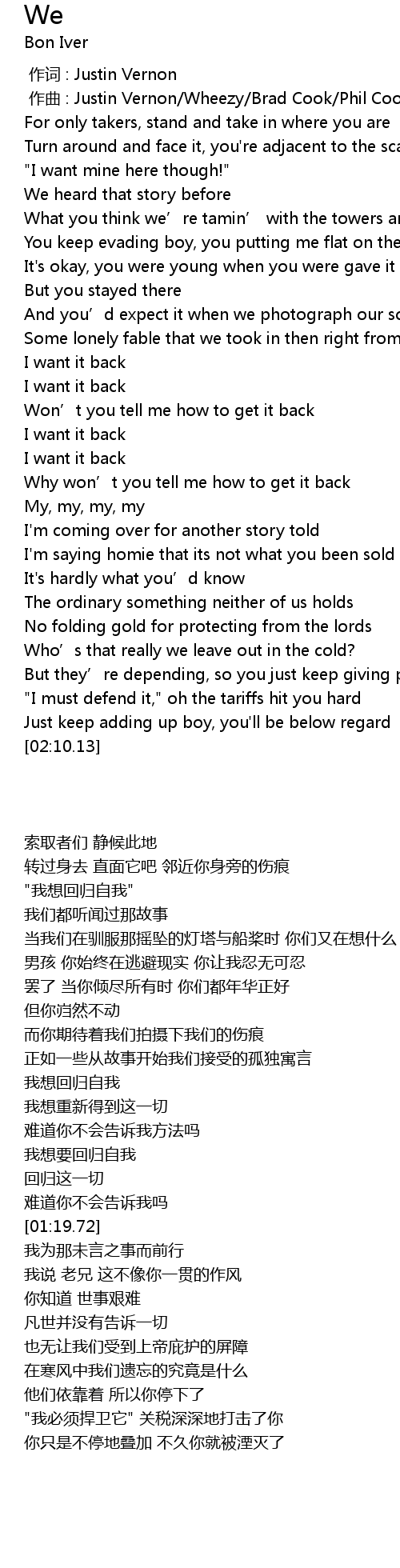 | [00:00.00] | zuò cí : Justin Vernon |