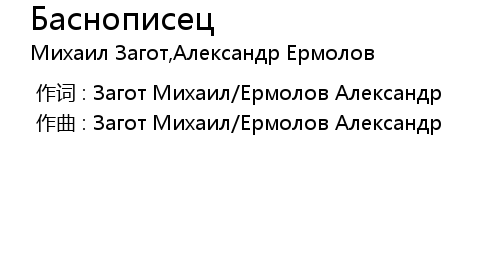 | [00:00.00-1] | 作曲 : Загот Михаил/Ермолов Александр |