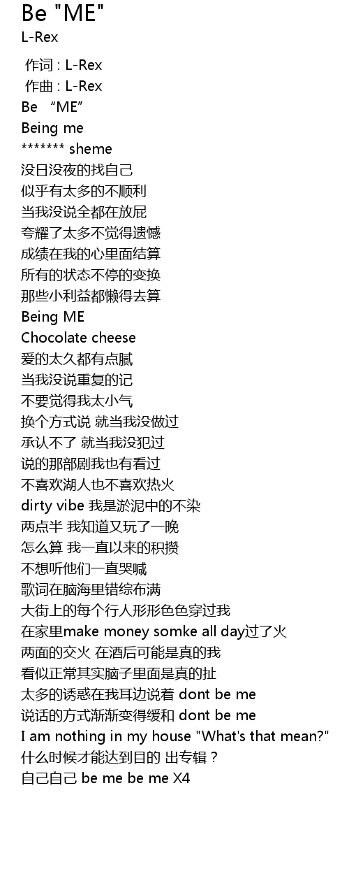 | [01:19.137] | zì jǐ zì jǐ be me be me X4 |