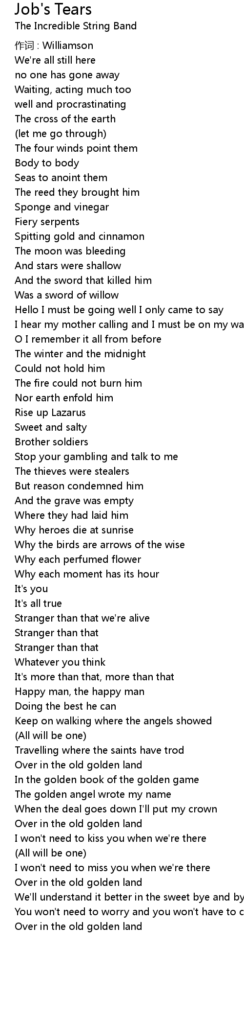 | Song | Job's Tears |