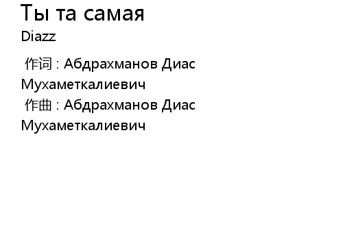 | [00:00.00-1] | 作曲 : Абдрахманов Диас Мухаметкалиевич |