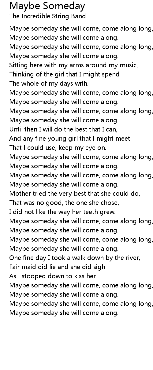 Maybe someday she will come, come along long, |