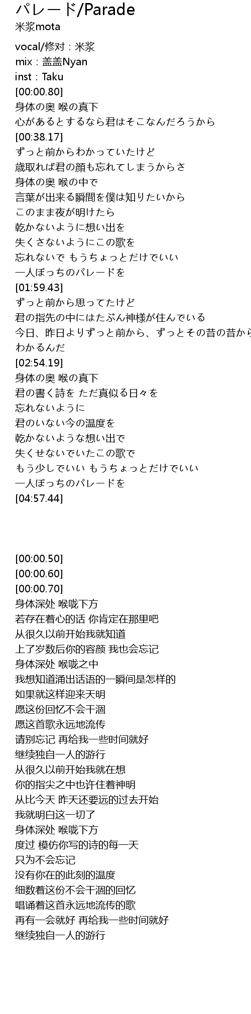 | [00:00.50] | vocal/修对:米浆 |
