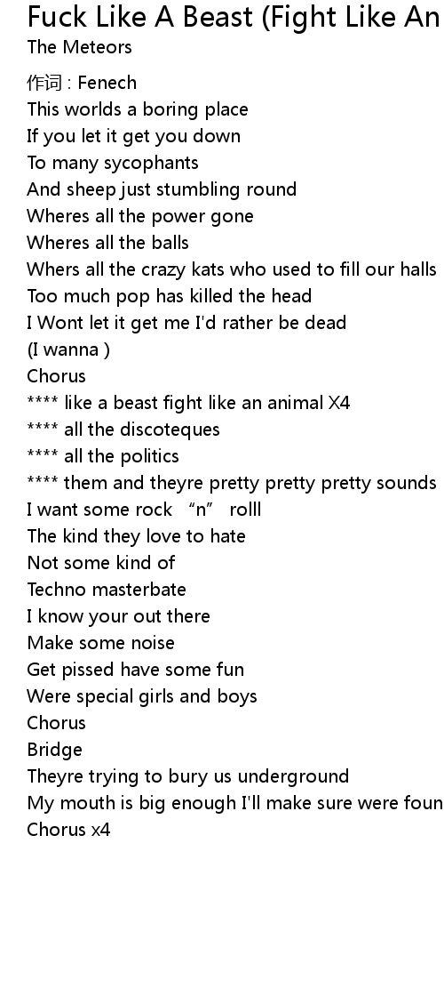 | Song | Fuck Like A Beast (Fight Like An Animal) |