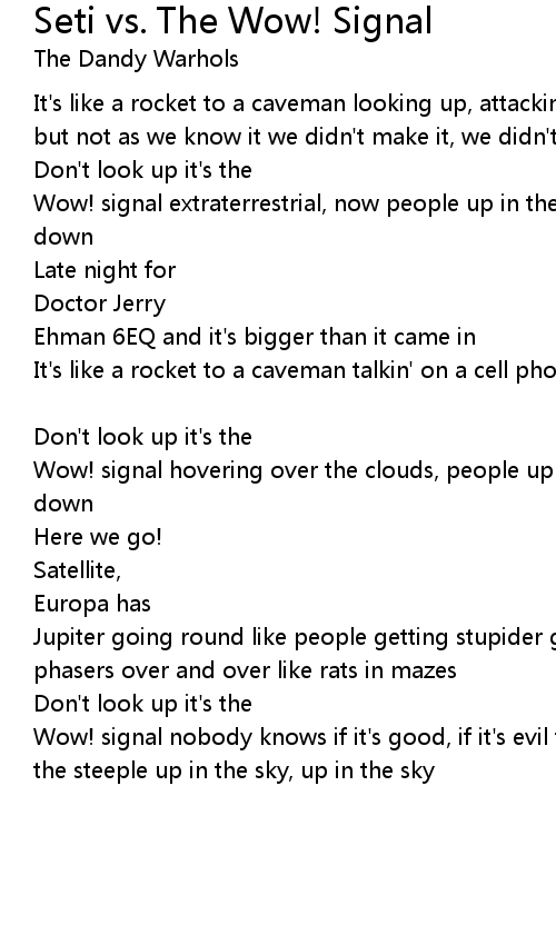 Wow! signal extraterrestrial, now people up in the sky up in the sky, coming down |