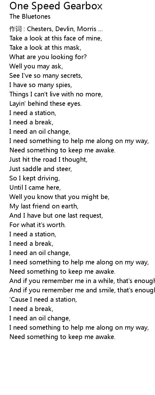| Song | One Speed Gearbox |