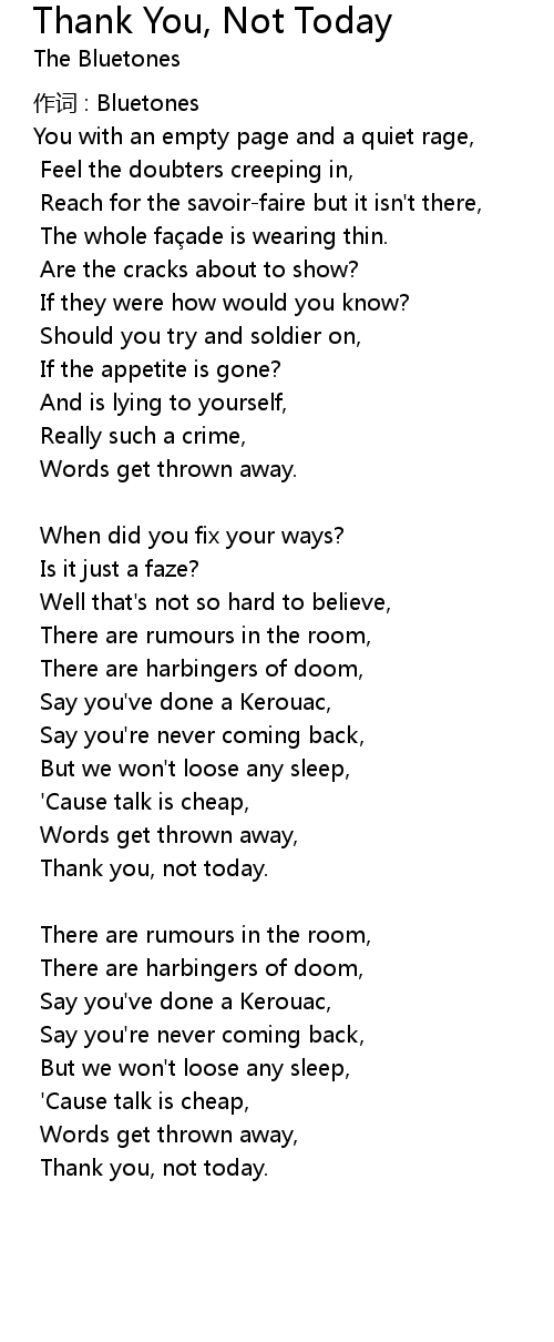 | Song | Thank You, Not Today |
