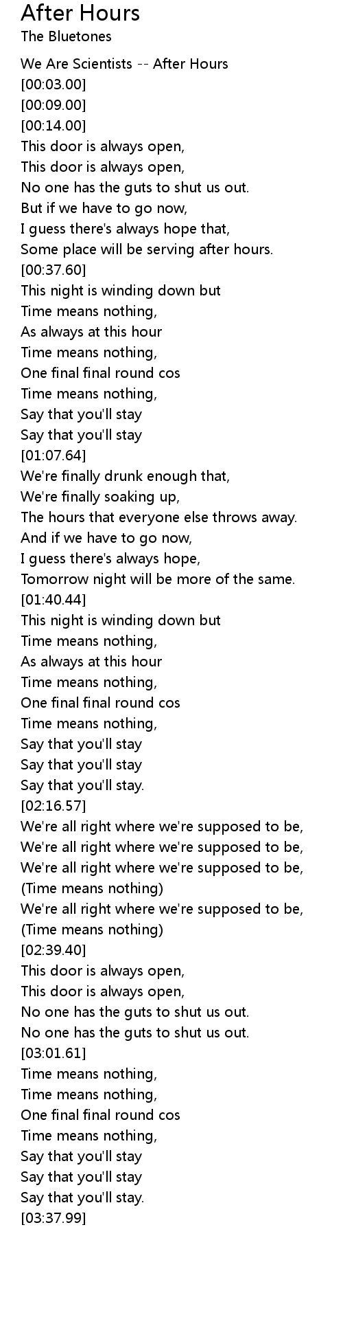[00:00.00] We Are Scientists -- After Hours