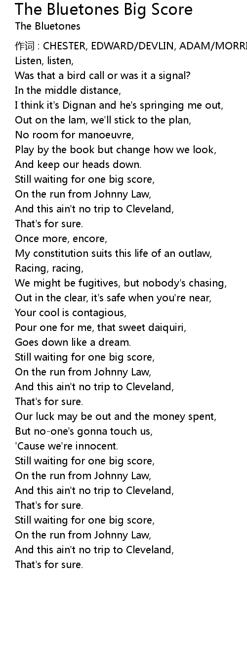 | 作词 : CHESTER, EDWARD/DEVLIN, ADAM/MORRISS, MARK/MORRISS, SCOTT | |