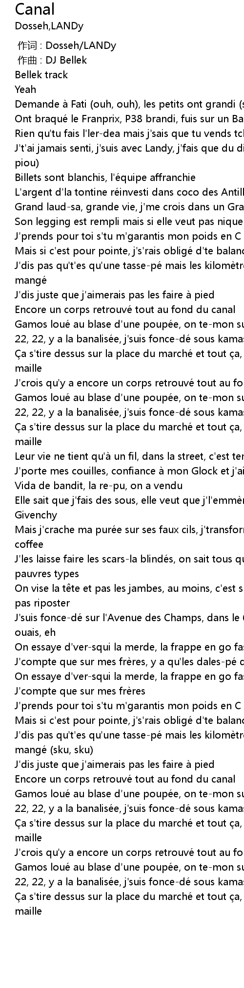 | [02:52.57] | 22, 22, y a la banalise e, j' suis foncede sous kamas |