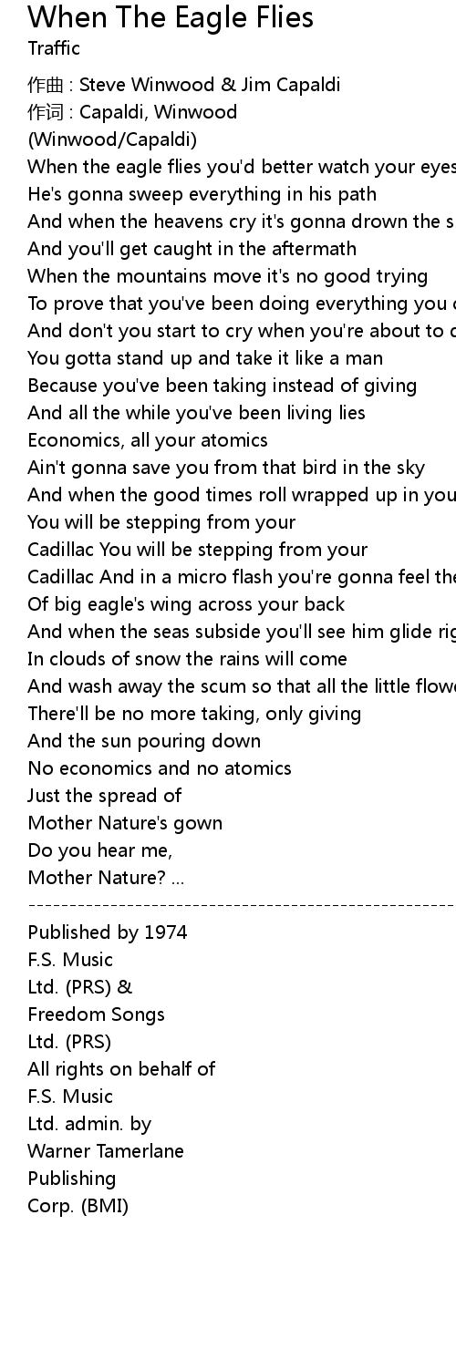 | 作曲 : Steve Winwood & Jim Capaldi | |