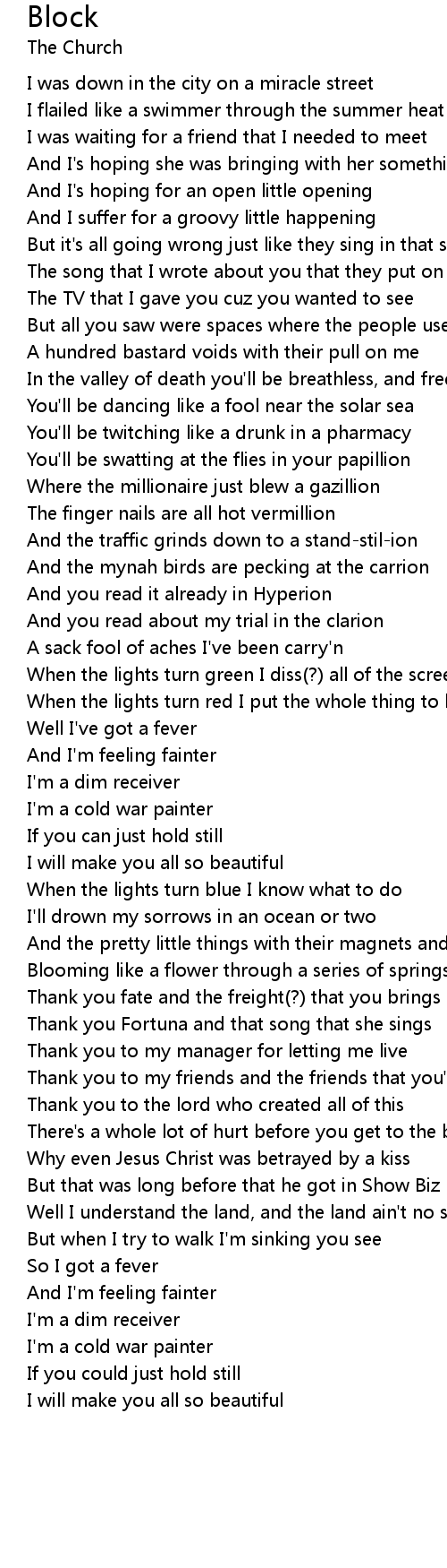 When the lights turn red I put the whole thing to bed |