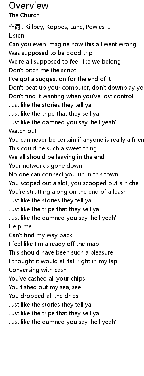 | 作词 : Killbey, Koppes, Lane, Powles ... | |