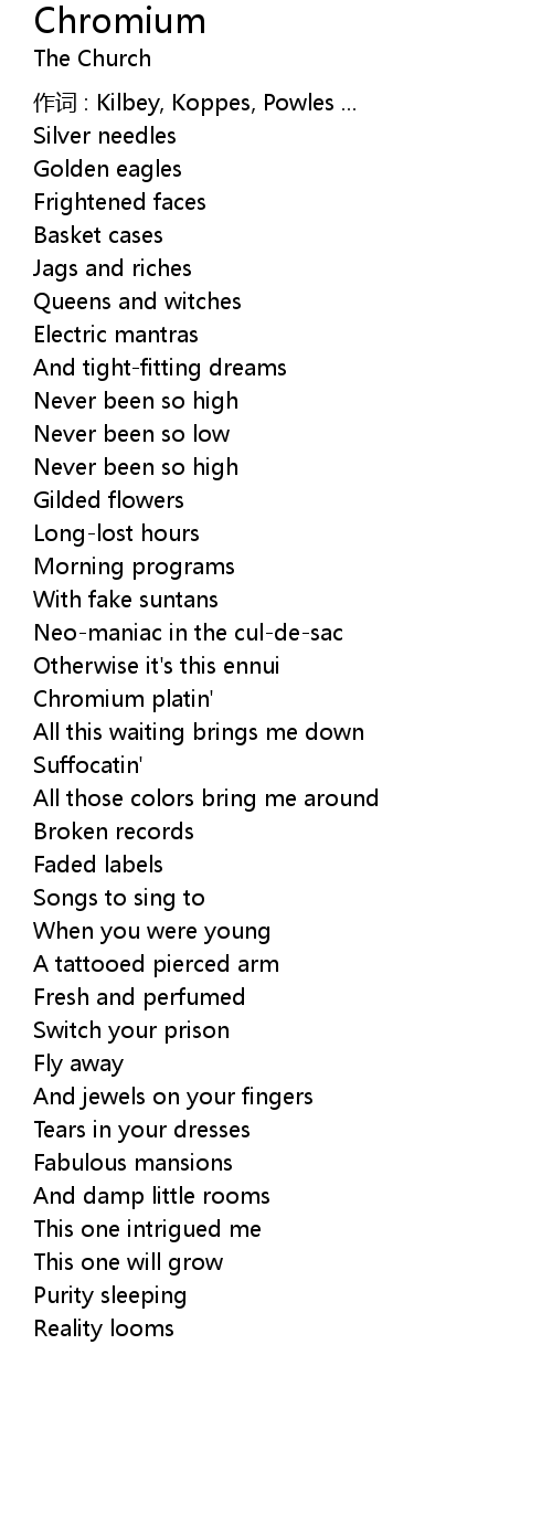 | 作词 : Kilbey, Koppes, Powles ... | |