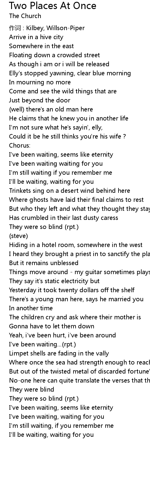 | Song | Two Places At Once |